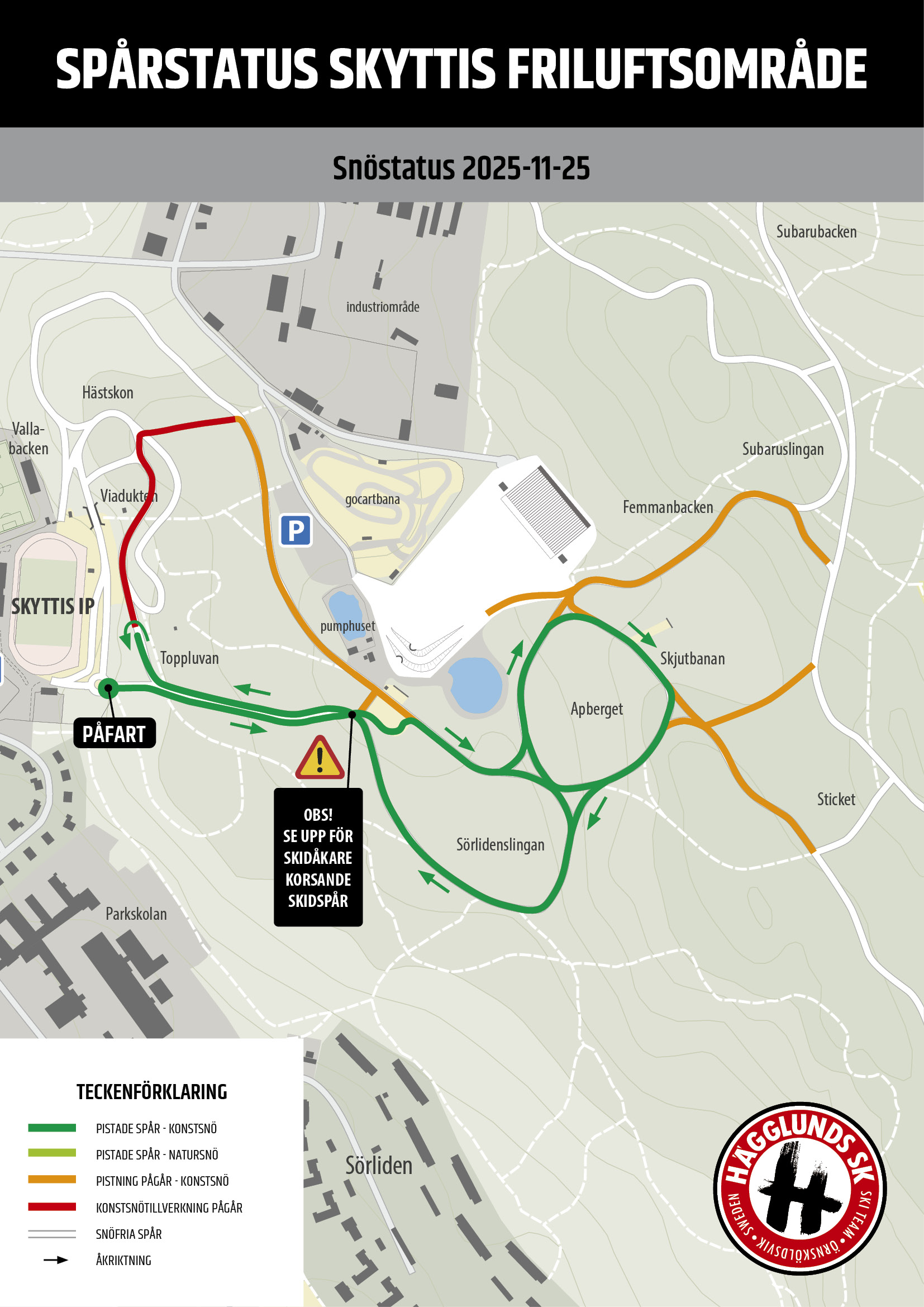 Torsdag 2025-11-27 öppnar vi 2km spår genom att utöka befintligt spår med “Apberget”, observera att nu gäller ordinarie åkriktning!